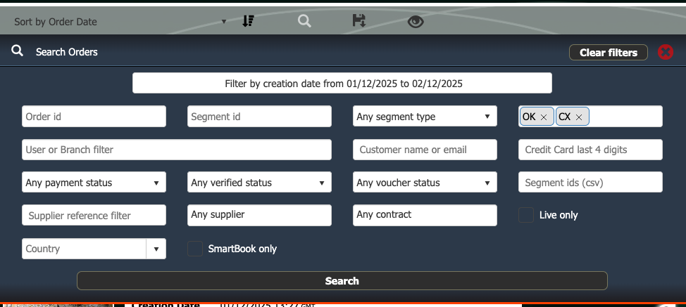 The Manage Orders screen is where the user can view the bookings. It’s designed for reservation oversight and reporting.
